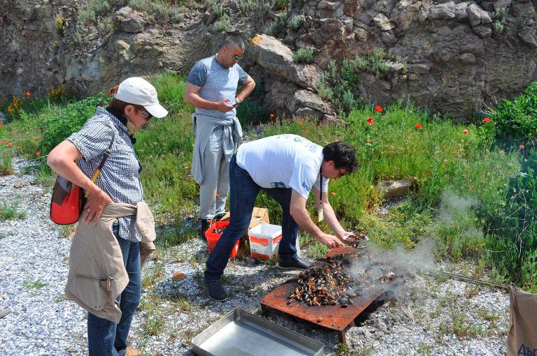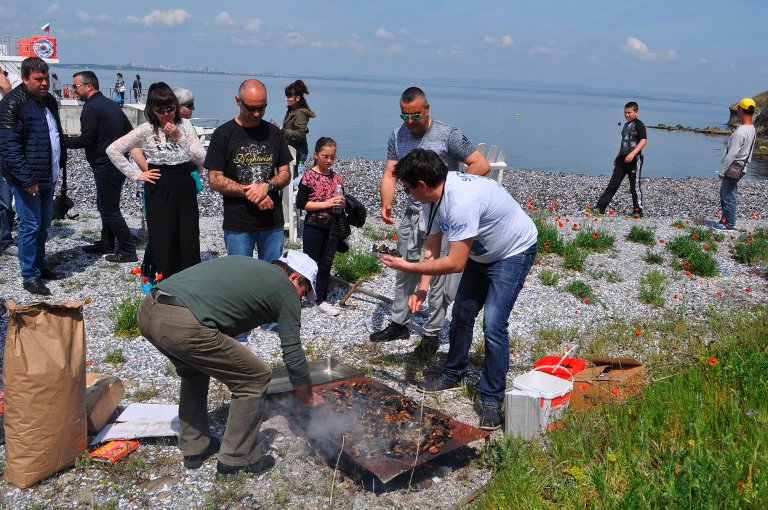 Пресни миди, печени на тенекия, зарадваха стотиците посетители на остров Св. Анастасия в неделния ден. Макар прогнозите да са за дъжд, едва ли имаше по-скойно и хубаво кътче в Бургаския залив от острова.