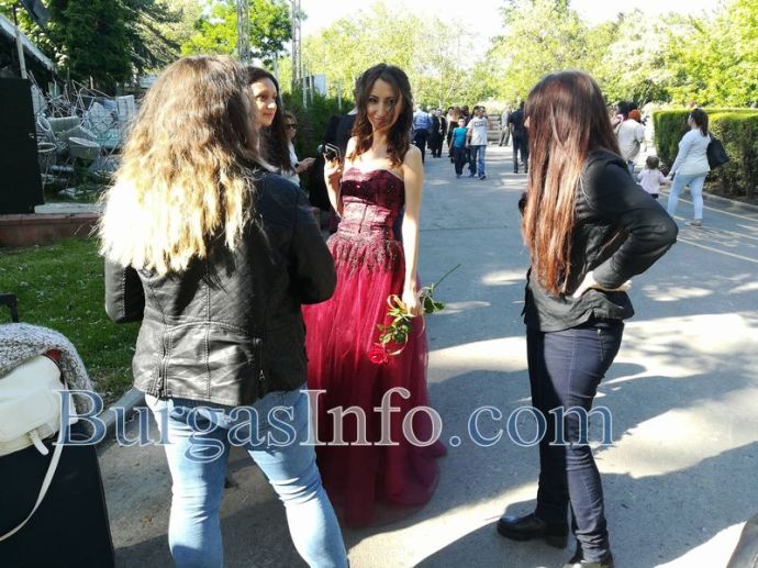 Абитуриентката Пламена е една от малкото, която избра къса рокля – като на финна кукла. „Избрах я в последния момент, видях я в един сайт и веднага ме грабна“, каза момичето, което прилича на фотомодел, пред БургасИнфо.