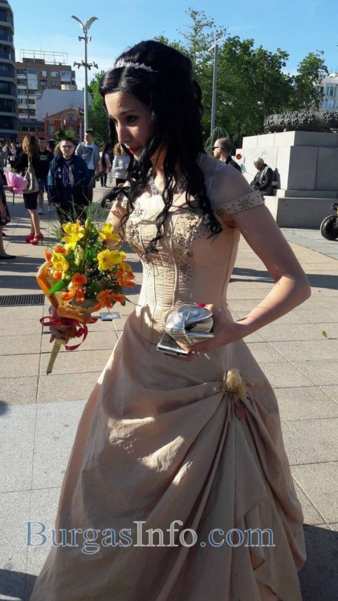 Принцесата на Морскоро училище в Бургас се казва Валентина. Тя пристигна на изпращането си облечена с дълга златна рокля, а в косите имаше тиара. ![]()