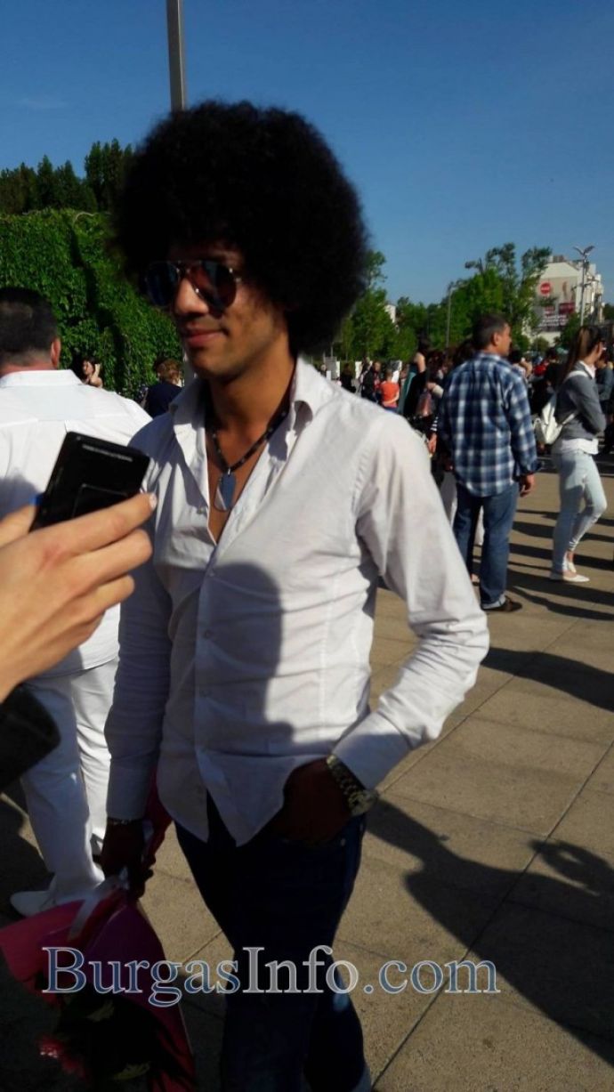 Имитаторът на Майкъл Джексън в Бургас и днес не пропусна да се появи на обществено събитие, за да бъде сниман. Той носеше цветя за една млада дама от Математическата гимназия.