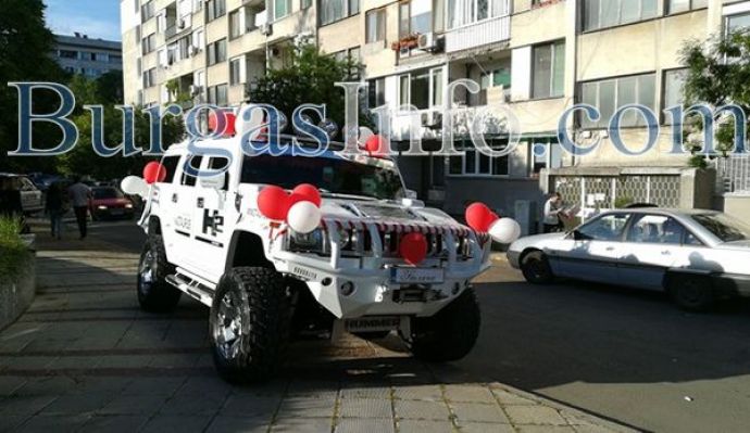В същото време друга мощна машина очакваше Биляна пред блок в жк „Лазур”. Огромният „Хамър” също беше украсен солидно с балони, а шофьорът като истински агент на звезда, запази пълно мълчание коя е абитуриентката, която ще вози. Името й обаче беше написано на номера на колата отпред.![]()