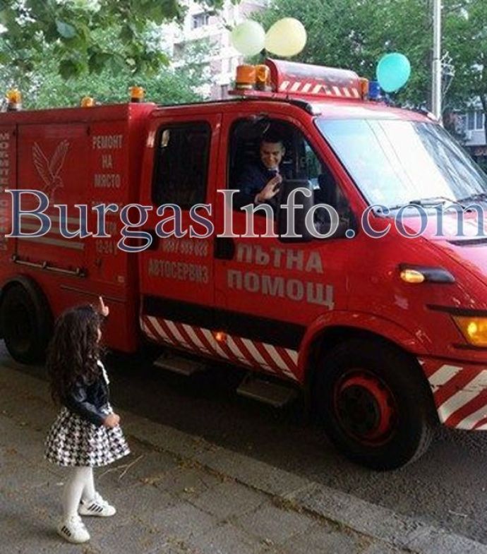 Товарен автомобил на Пътна помощ, украсен с балони, се превърна в атракцията на булевард „Демокрация” в Бургас. Автомобилът не е бил паркиран там във връзка с пътен инцидент или необходимост за подаване на ток, както е изписано на него, а е имал особено важна задача – да откара абитуриент до Слънчев бряг. Оригиналният превоз е на Койчо Димов от Механото, който щастливо потегли към купона за бала си. Автомобилът е частна собственост на роднини на зрелостника.![]()