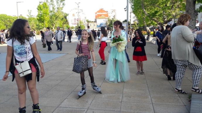 Дълги рокли, кокове и голи гърбове показаха абитуриентите, чието изпращане бе на площад „Тройката” в Бургас. Най-предпочитаните цветове сред дамите бяха синьо и червено, но не липсваха и някои, които бяха по-смели и чиито тоалети бяха решени в запазения за булките цвят - бяло. Красиви принцеси от Морското училище, куче в същата рокля, като абитуриентката и красиви майки, които приличаха на дамите за бала на своите синове.