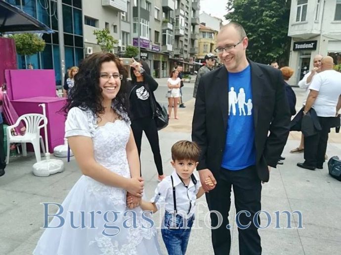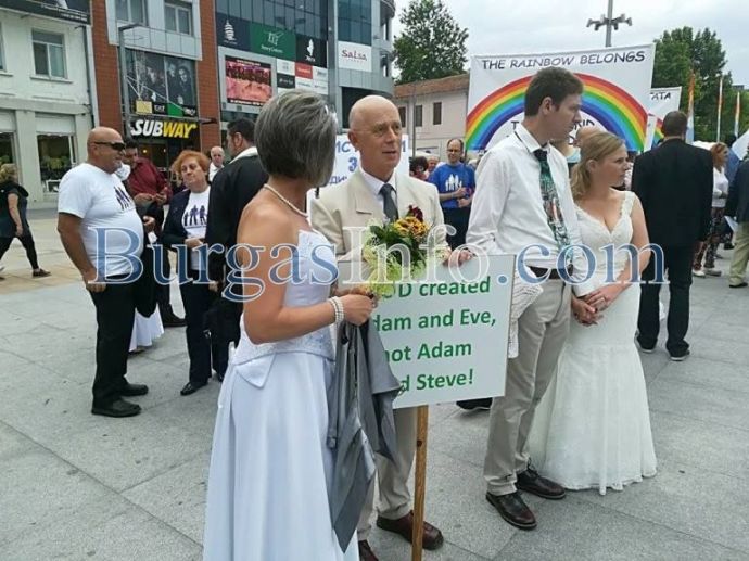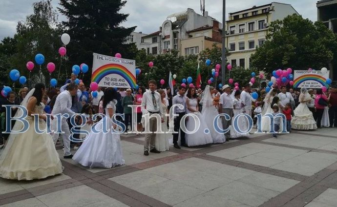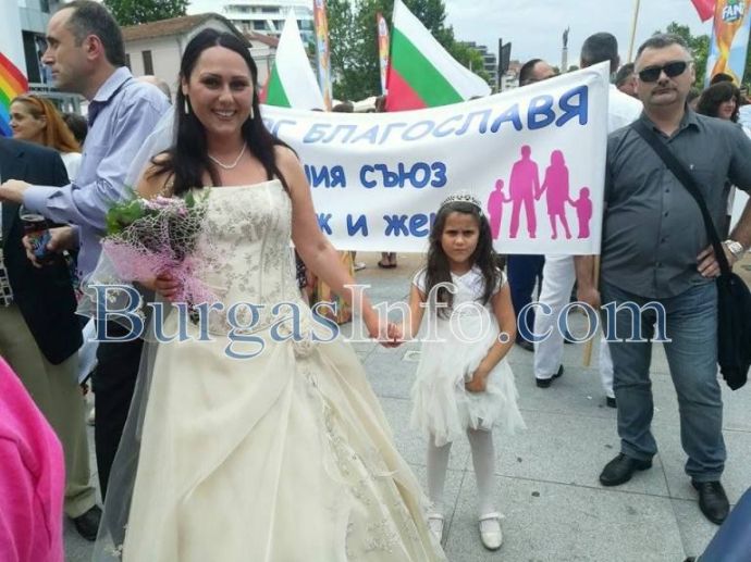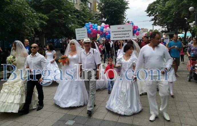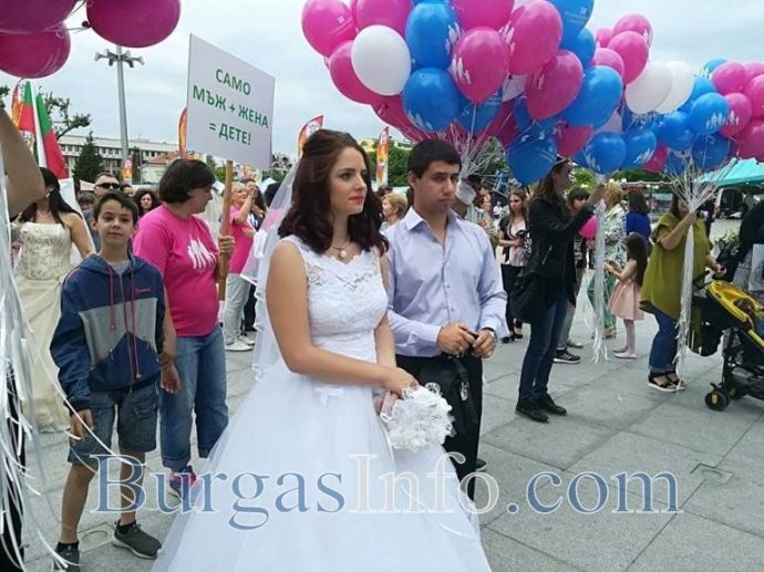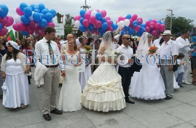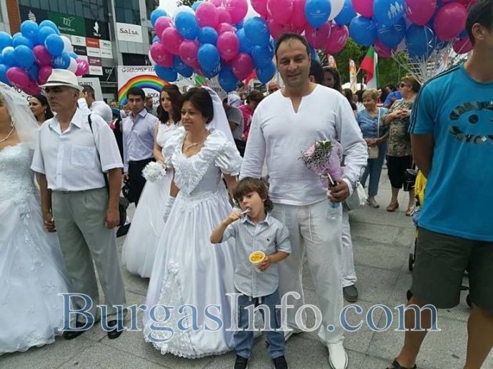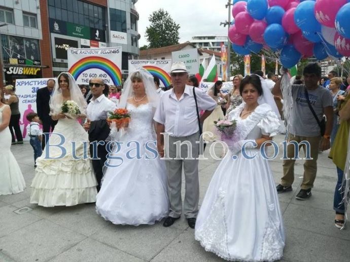 Семейства с булчински рокли и сватбени костюми шестват по централната улица „Александровска” в Бургас, като са истинска атракция за хората, седящи по околните заведения. Техният парад е традиционен и е отговор на гей-мероприятието, което се провежда в София.