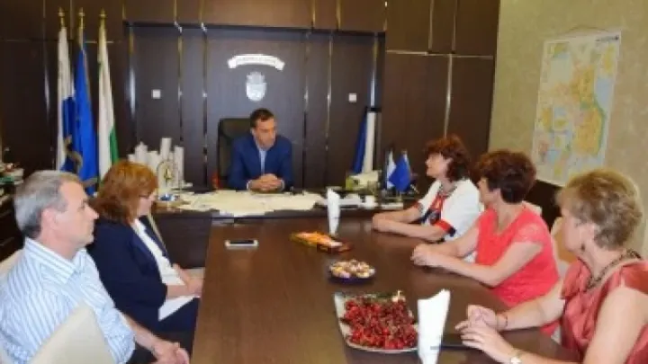 Кметът Димитър Николов се срещна с директорите на Начално базово училище "Михаил Лъкатник" - Веселина Въжарова, ОУ "Васил Априлов" - Марияна Стефанова и ОУ "Братя Миладинови" - Бочко Бочев, за да ги поздрави за високите резултати при оценяването след 4 клас, което ги нареди сред най-добрите в България.