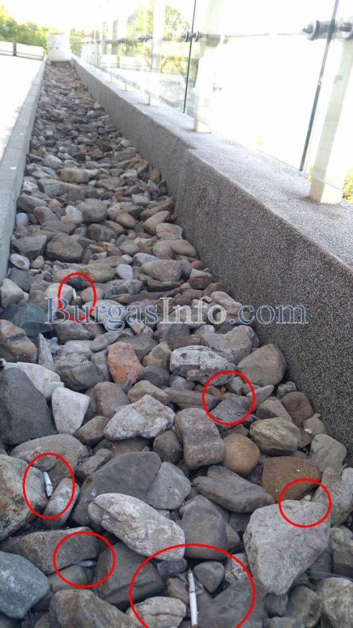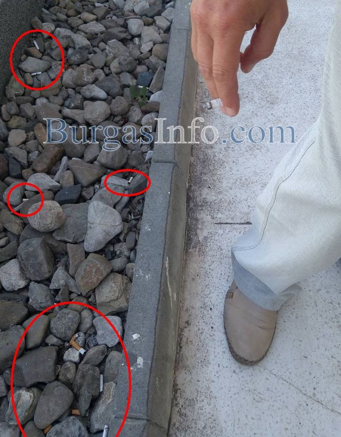 "Освен експозициите в "Казиното", можем да наблюдаваме и богата колекция от разхвърляни фасове в декоративния пояс на Терасата. Има кошчета, но явно те са пожелателни и всеки мята изпушената цигари където свари", възмущават се очевидци, които ни изпратиха снимки.