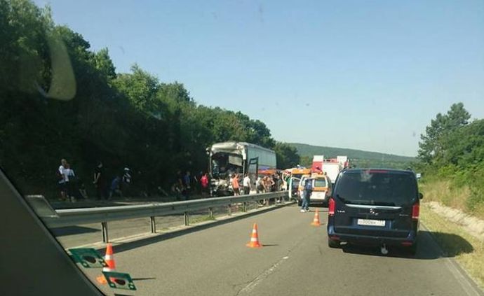 Два автобуса се сблъскаха на натовареният път Бургас – Созопол. Единият от тях е настигнал другия и така е станала катастрофата. Инцидента стана в 9.20 часа в района на спирка „Моряк“. Трафикът към Южното Черноморие в момента е буквално блокиран, а задръстването – километрично. Колони автомобили са спрели край разклона за Парк „Росенец“. Част от тях отбиват през село Росен. В момента Пътна полиция вече има и на разклона на село Маринка и пренасочва движението от там. Към мястото на инцидента продължават да пристигат линейки. На място има и пожарна и три екипа на полицията.