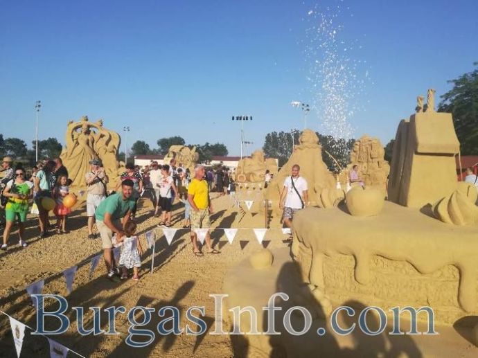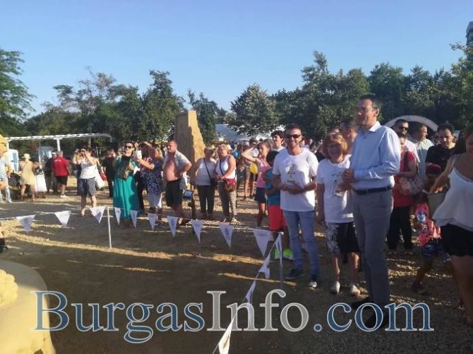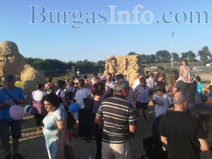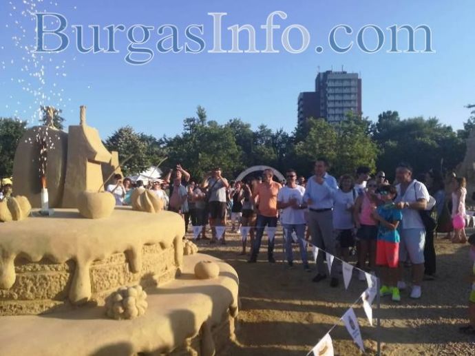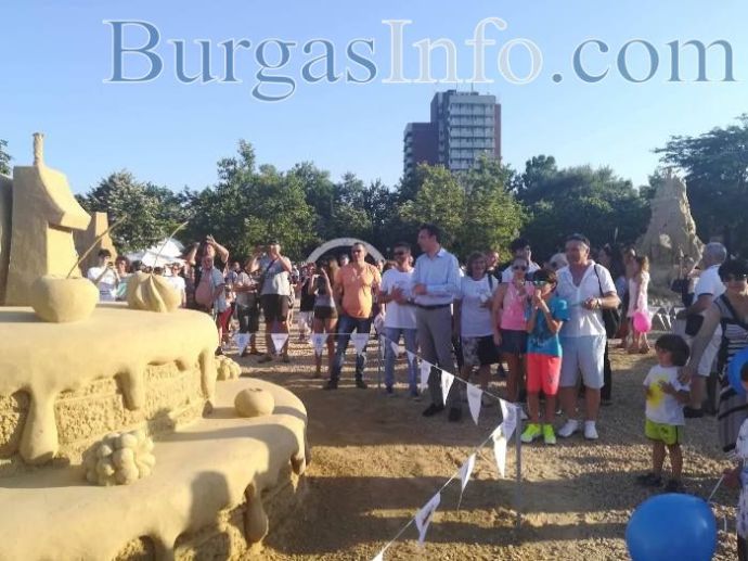 Кметът Димитър Николов и зам.-кметът Йорданка Ананиева откриха тази вечер десетото издание на превърналия се в емблема на Бургас Фестивал на пясъчните фигури. Стотици бургазлии и гости на града се потопиха още в първия ден в приказното царство. Много настроение, музика, малки актьори и танцьори предизвикаха усмивки и аплодисменти сред публиката, която бе съставена от хора от различни възрасти както от съвсем малки деца, така и баби и дядовци.