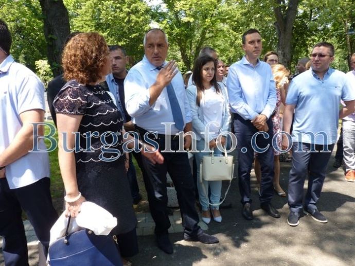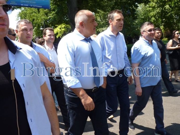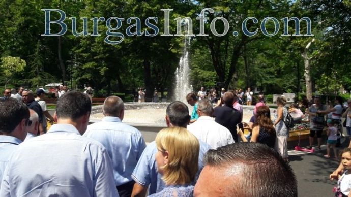 Точно на обяд премиерът Бойко Борисов пусна с дистанционно фонтана до Казиното и така символично откри обновената Морска градина на Бургас.