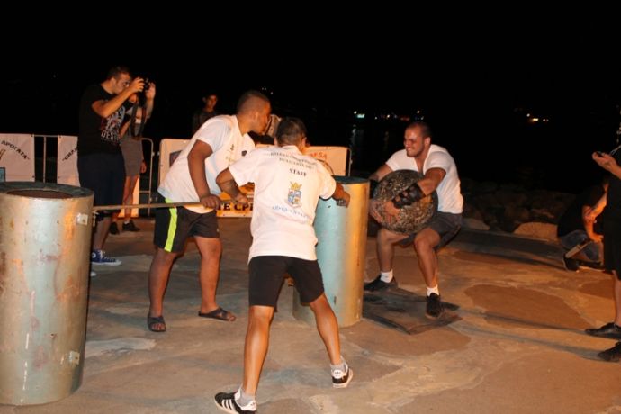 Най- интересна и атрактивна за публиката се оказа първата дисциплина, в която силовите атлети дърпаха 18-тонна пожарна кола. Състезателите направиха още „Фермерска разходка“ , като изминаха 20 метра, натоварени с 220 килограмова тежест. В дисциплината „Мъртва тяга“ бе повдиган лек автомобил. „Логлифт за максимално повдигната тежест" и „Кобилица" също затрудниха стронгмените, но не колкото вдигането на „Камъните на Атлас“, които бяха с тежест от 130 и 160 кг.![]()