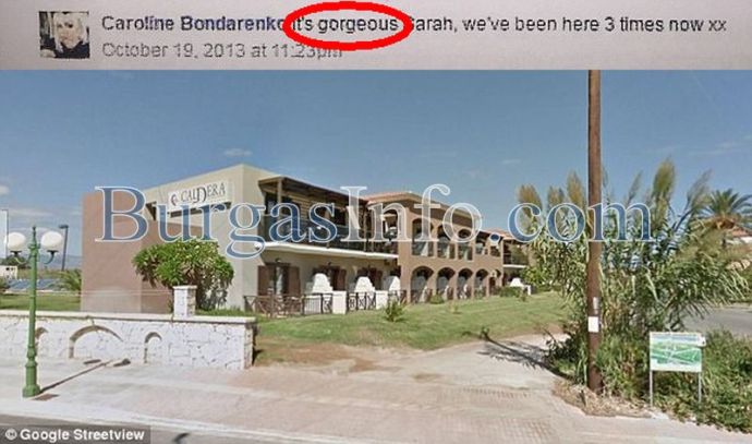 Гръцкият хотел, в който двойката са били отседнали и публикация на Каролина в социалната мрежа, в която твърди, че си прекарва добре и е доволна от почивката