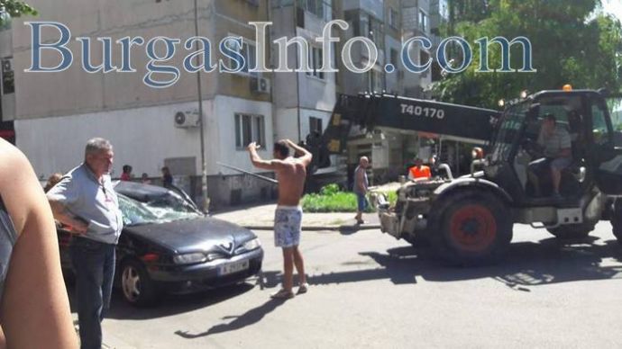 Багер намуши и буквално смачка лека кола, в която е пътувало семейство с деца, в бургаския ж.к.“Изгрев“. Инцидентът стана на кръстовище вътре в комплекса. Машината се е изнесла на завоя, а острието е промушлило предното стъкло. Предницата на колата е смазана. Хората са в шок. „За малко да се стигне до голяма трагедия“, коментираха потресени минувачи пред БургасИНФО.