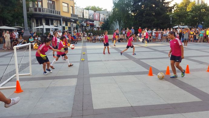 Женски футболен клуб "Бургас" проведе футболна демонстрация пред Община Бургас по случай международния ден на младежта вчера. Пред многобройната публика момичетата показаха умения, техника и добро настроение.