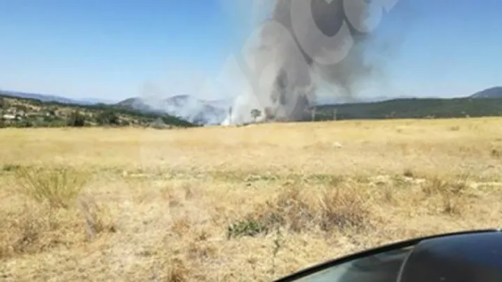 Пожарът е пламнал край село Мечкул. Гори районът на разрушената черква „Св. пророк Илия”.