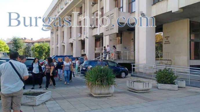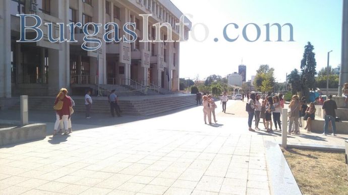 Полиция отцепи Съдебната палата в центъра на Бургас, заради получения сигнал за поставена бомба. Започна евакуацията на магистратите и служителите, по-голямата част вече са навън.