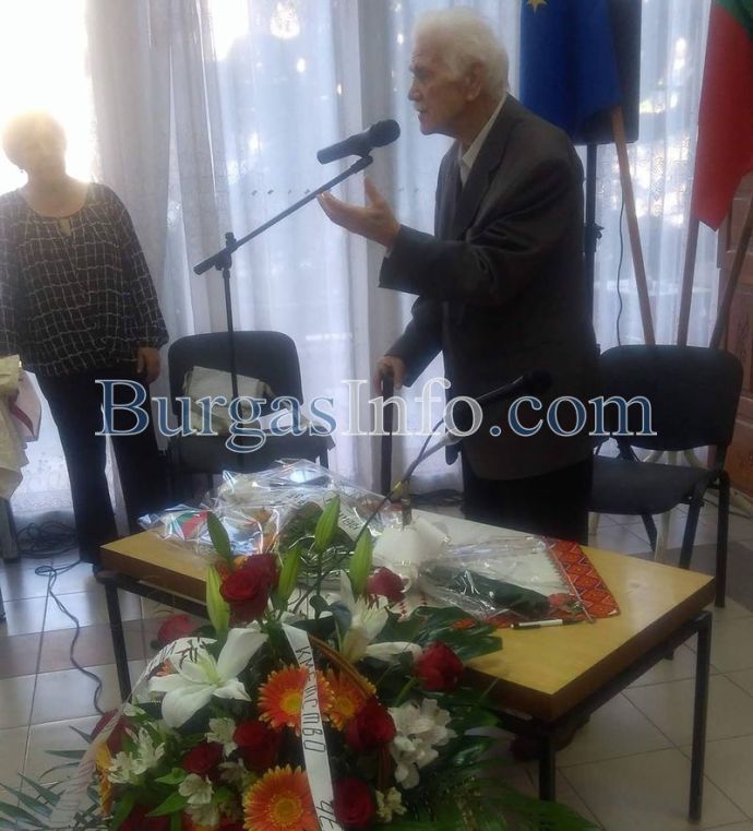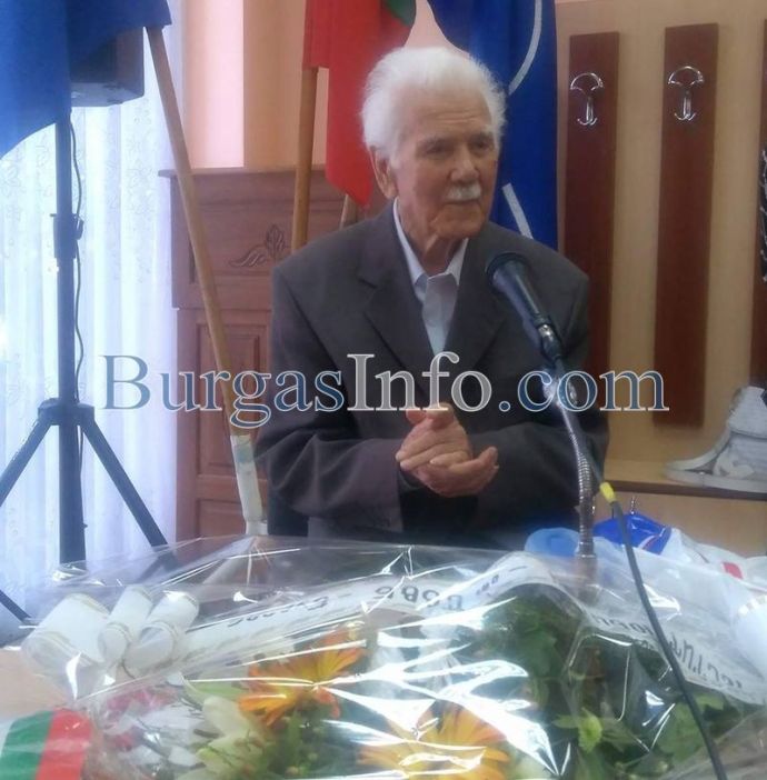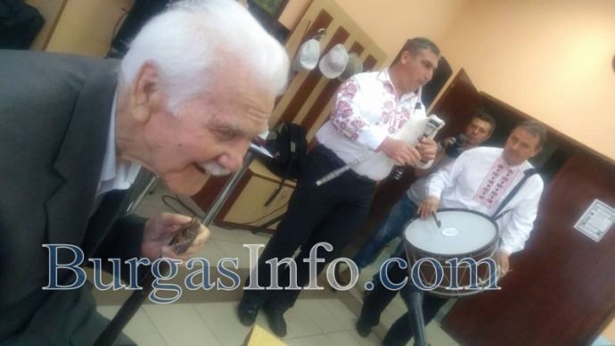 "Здрависвайки се с вас, макар да сте на преклонна възраст, аз усещам силната мъжка ръка, нещо което липсва на повечето млади сега. Искам да ви поздравя за стотния юбилей! Това за мен е нещо уникално, никога не съм бил на рожден ден на столетник, още по-малко на столетник, който е участвал във война и е бранил границите на тази държава. Огромно благодаря! Честит рожден ден, бъдете много здрав още много години", пожела на юбиляра гурбернаторът на град Бургас Вълчо Чолаков.