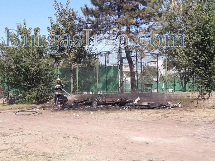 Пожар пламна в парка на бургаския ж.к.“Изгрев“. Гори каравана, която се намира до тенис кортовете и се използва от жените, поддържащи озеленяването. По това време в района е пълно с хора. Издигат се гъсти пушеци.