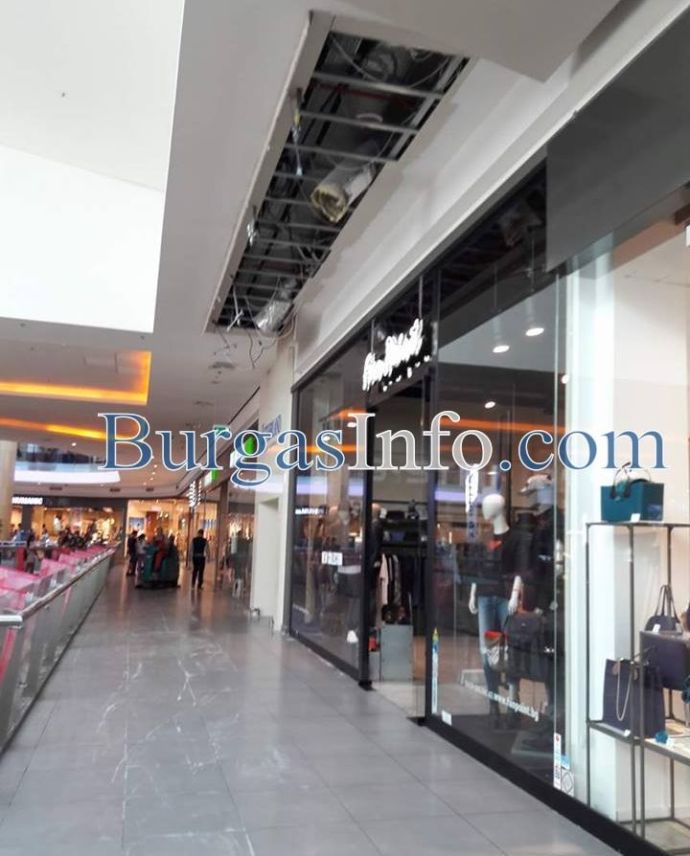Инцидентът стана около час. По това време в търговския обект било пълно с клиенти. В момента на тавана зее огромна дупка, служители от поддръжката са изнесли откъртените парчета, наводненият под вече е почистен, а работата в магазините продължава с нормален ритъм.