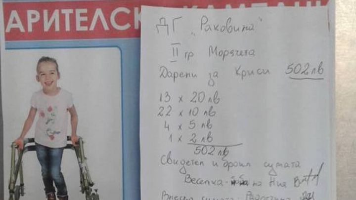 Деца и родители от втора група "Моряче" на ДГ "Раковина" Бургас са се обединили за каузата на Криси (виж ТУК) и на 15 септември вместо цветя са дарили сумата от 502 лева за нейното лечение. За това се похвалиха организаторите на кампанията, събиращи средства за лечението на Криси, а парите децата внесоха по дарителската сметка.