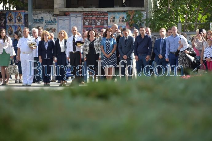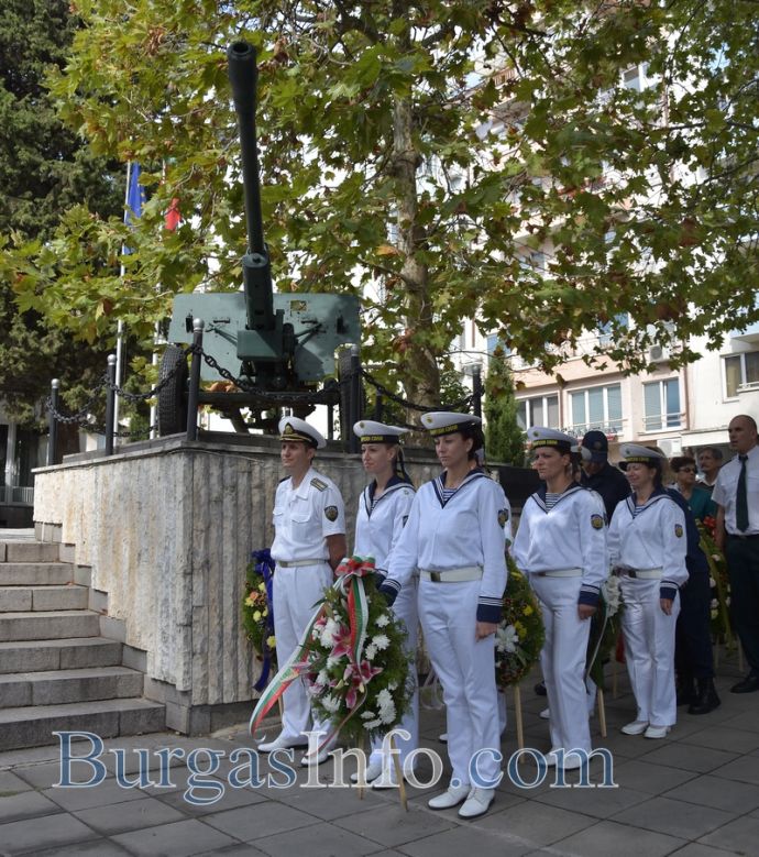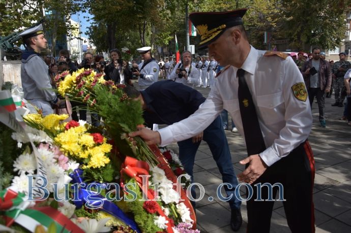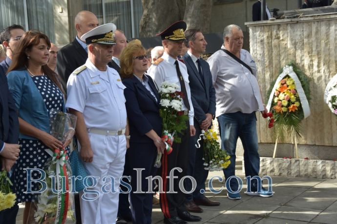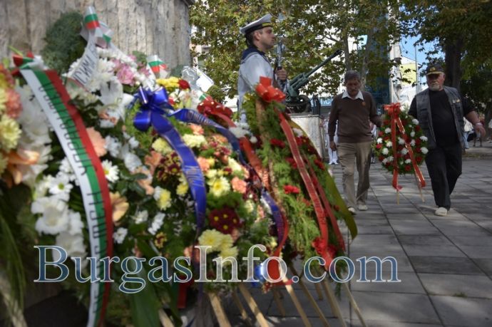 Пред Паметника на 24-ти Черноморски пехотен полк /пред Военния клуб/ венци и цветя в памет на загиналите за защита на българската независимост поднесоха зам.-кметът на Бургас Йорданка Ананиева, зам.-министърът на околната среда Атанаска Николова, зам.-областният управител Севдалина Турманова, народните представители от Бургаски регион Ивелина Василева, Галя Василева, Иван Вълков, Диана Саватева, главнокомандващият на Военноморска база-Бургас комодор Мален Чубенков, директорът на ОД на МВР комисар Калояян Калоянов, общински съветници, родолюбиви организации и признателни граждани.