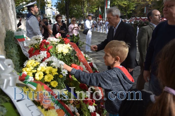 Бургас отбеляза 109 години от обявяването на Независимостта на България. Честванията започнаха на площад "Атанас Сиреков" с изпълнение на тържествения химн "Независимостта" от представителния Бургаски духов оркестър. Произведението е написано от композитора Георги Шагунов часове след провъзгласяване на Манифеста за Независимостта на България. Под звуците на този химн военният оркестър на 24-ти Черноморски полк, чийто капелмайстор е бил Шагунов, още в същия ден /22 септември 1908 г./ обикаля бургаските улици, възвестявайки празничната и знаменателна новина.