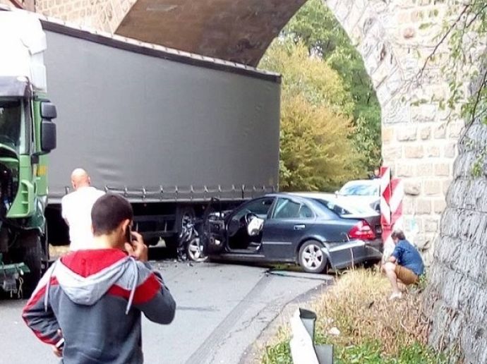 Жесток удар между ТИР и лека кола преди руенското село Трънак затвори пътя, съобщават членове на Фейсбук групата „Шофьори Бургас“