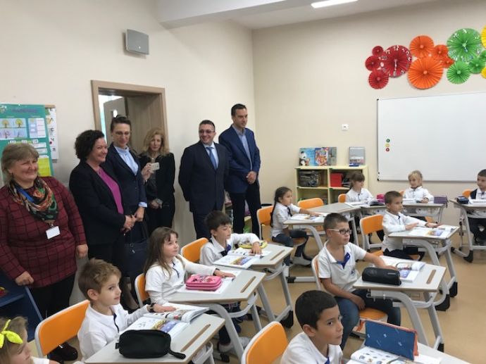 Министър и кмет посетиха още новото основно училище "Александър Георгиев Коджакафалията", създадено със средства по Оперативна програма "Региони в растеж".