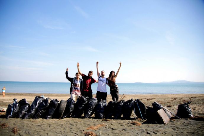 Събраните в Бургас отпадъци. Мястото е избрано от вокалиста на група STOKHOLM Мартин Димов (с бялата тениска). Снимка: Grimaze