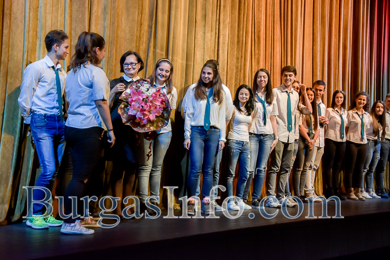 Разчувствана, госпожа Решовска трудно сдържа емоциите си, целувайки всеки един от учениците си по отделно.