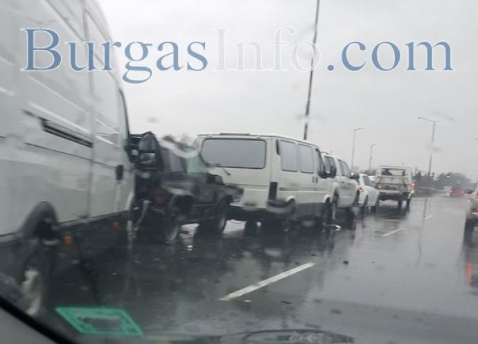 Верижна катастрофа с четири автомобила затруднява движението след надлез „Владимир Павлов“ в Бургас, в посока от кръстовището „Трапезица“ към „Меден рудник“. Сблъскали са се два джипа и два микробуса. На място са екипи на полицията. Шофирайте внимателно в този участък!