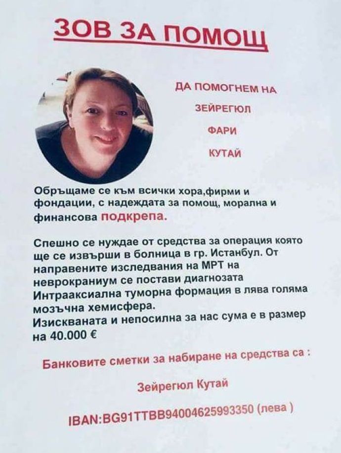 Нейни колежки се наемат с нелеката задача да съберат парите за лечението. До тук събраната сума е едва 2373 лв, а тя трябва да се умножи поне по 30, за да успеят да помогнат на Зайрегюл, преди рака да е навлязъл в трета фаза.