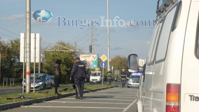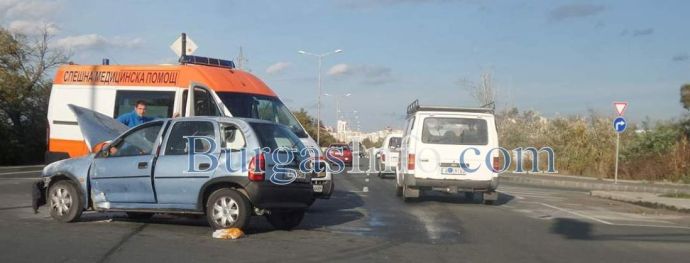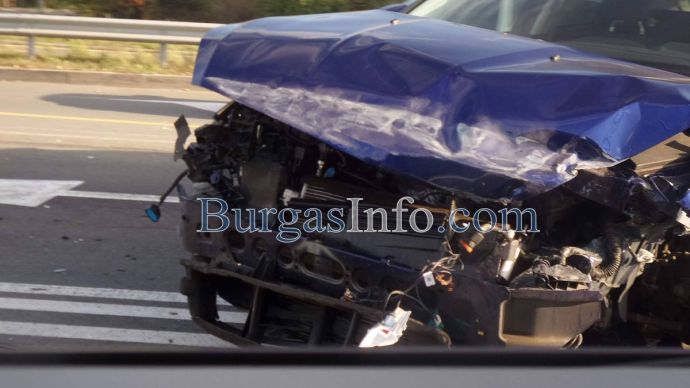 Единият от автомобилите е смазан отпред и отстрани, отворени са въздушните възглавници. Втората кола, която е „Опел Корса”, е с ударена предница. На асфалта има разпръснати части от автомобила. Точно до колата е спряна линейка, на място има и екип на пожарната.![]()