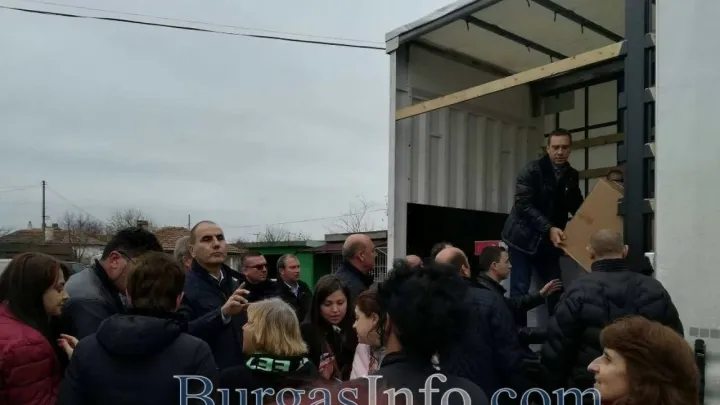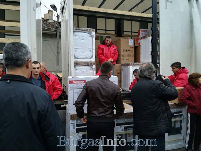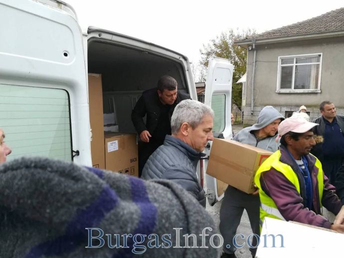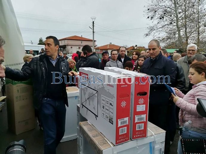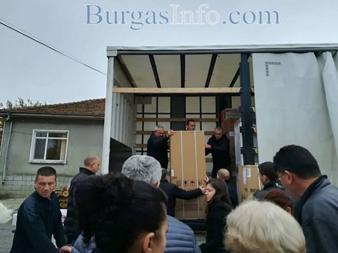 Местни жители чакаха на площада да получат отнесените от наводнението уреди. Камионите разтоварваха в центъра на Полски извор техниката, а от там с микробуси се отправя към селата – Ливада, Трояново, Полски извор, Черни връх, Равнец и Братово, както и към бургаския квартал Горно Езерово.![]()