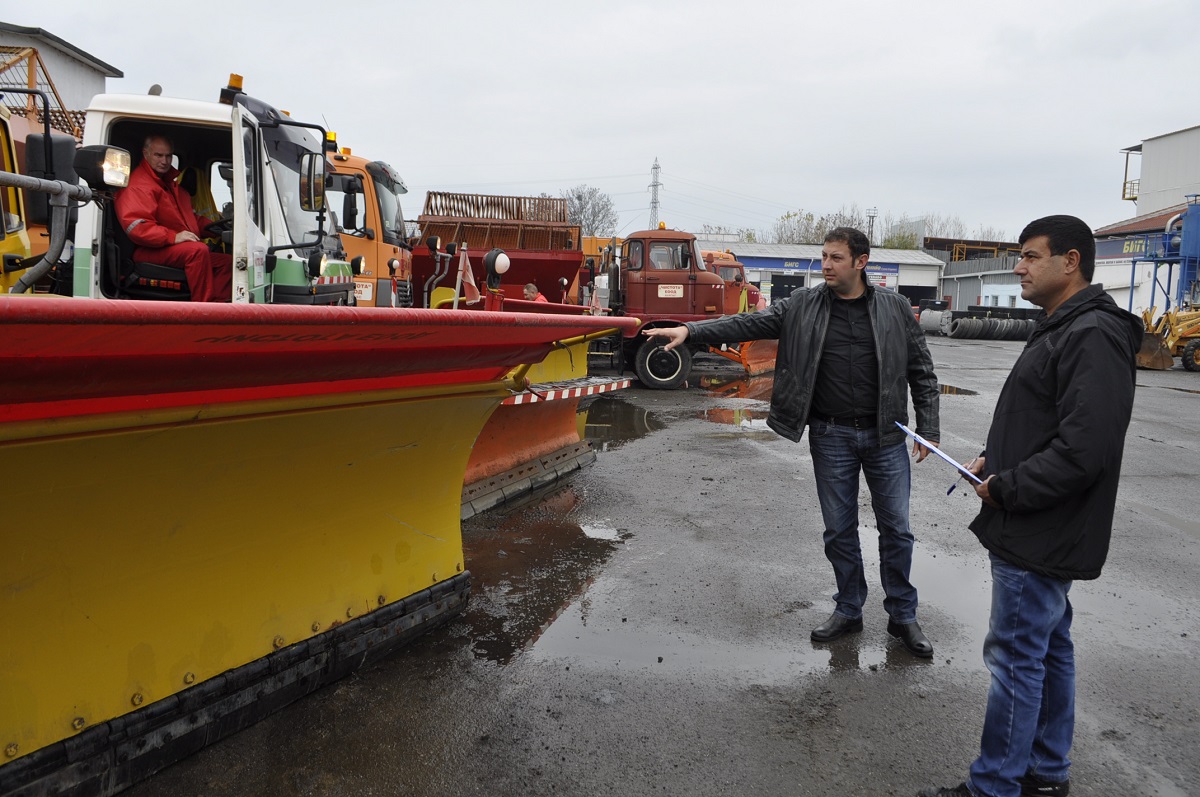 Служители от различни дирекции на общинската администрация, съвместно с представител на "Пътна полиция", посетиха базите на дружествата "Консорциум Титан - Бургас", "Благоустройствени строежи", "Бургасинвест" и "Чистота" ЕООД, инспектираха специализираната техника и наличните количества инертни материали и луга.
