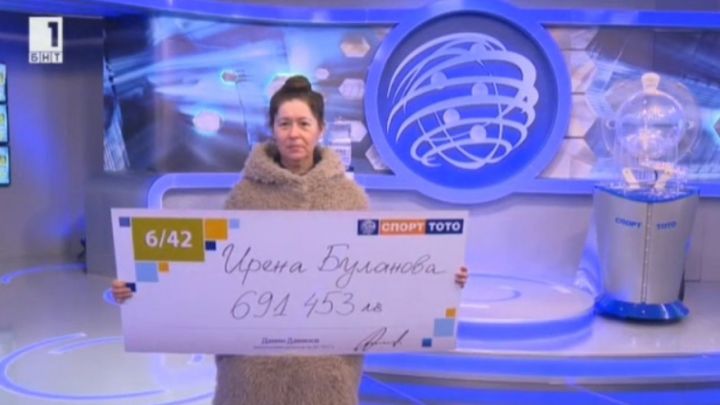 Нова печалба в тото 6/42. Джакпотът беше ударен от 51-годишната бургазлийка Ирена Буланова.Вчера тя получи късметлийския чек за близо 700 хил лв. в Централата на Български спортен тотализатор.