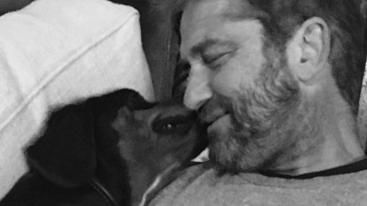 Актьорът Джерард Бътлър, познат с ролите си във филми като “300“ и “Геобуря“, има нова любов в живота - бездомно кученце, осиновено от БългарияБътлър лично е публикувал снимка в сайта Инстаграм, на която се гушка с новата си питомка, която открил да скита бездомна в планински район по време на снимки в страната. Фотографията е придружена от надписа: