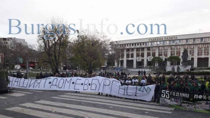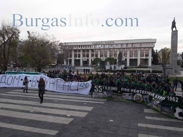 С транспаранти „Нашият дом е в Бургас“ и „Не убивайте футбола в Бургас“ служители на футболен клуб „Нефтохими“, заедно с децата и юношите от школата, родители и привърженици на отбора посрещат общинските съветници в Бургас. Те провеждат мирно събрание пред Дома на нефотхимика в центъра на града, където от 9 часа започва сесията на местния парламент. С послания бяха и тениските, с които бяха облечени децата.
