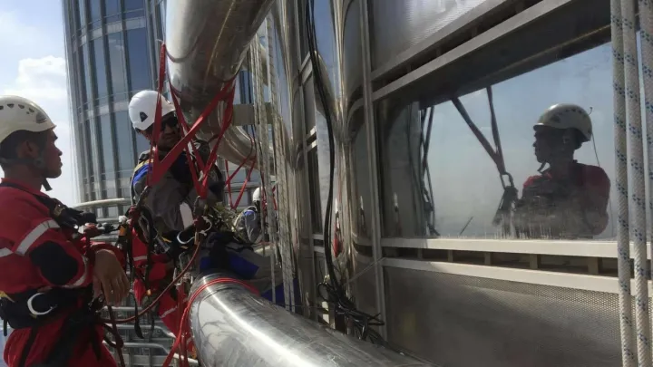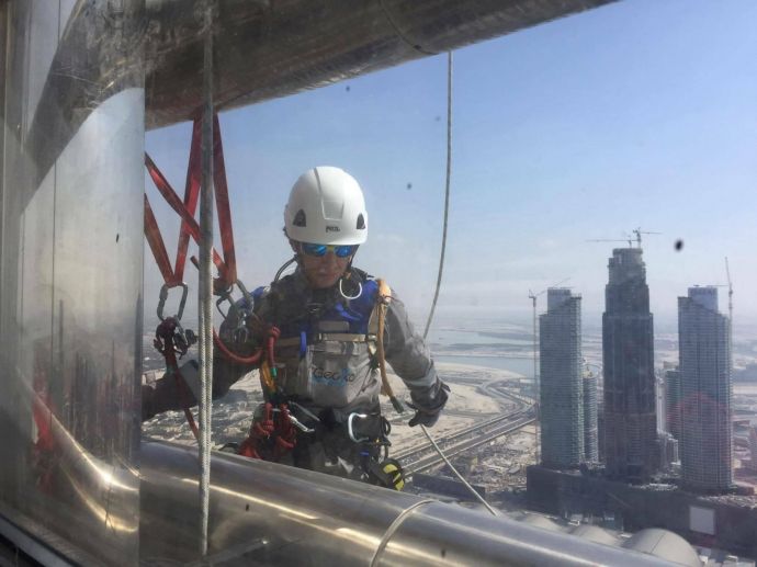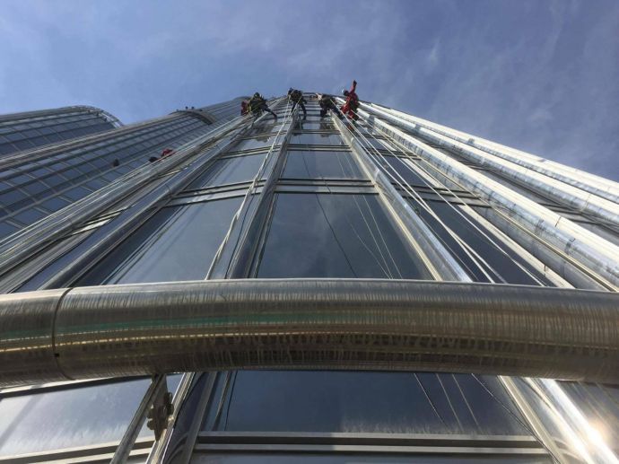Двама индустриални алпинисти от Царево – Димитър Цинов и Еленко Герасимов – са част от екип, полагащ кабели за осветление по фасадата на най-високата сграда в света – 828-метровият небостъргач Бурж Халифа в Дубай.