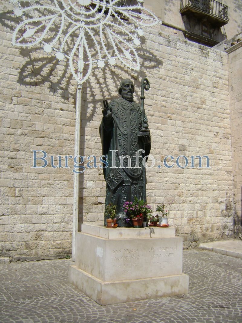 Свети Николай Чудотворец, освен на Бургас, е патрон и на друг голям пристанищен град в Европа, а именно на италианския град Бари, където се съхранява саркофагът с мощите на светеца. Всеки, посетил Бари, става свидетел на интересен феномен – саркофагът е херметически затворен, но вътре, от мощите на Св. Николай, се отделя благовонно миро, което изтича под формата на роса прозрачна течност. Веднъж в годината, на 9 май, датата на която неговите мощи са пренесени в Бари, монаси отварят саркофага и събират мирото, а много от вярващите твърдят, че то носи изцеление.