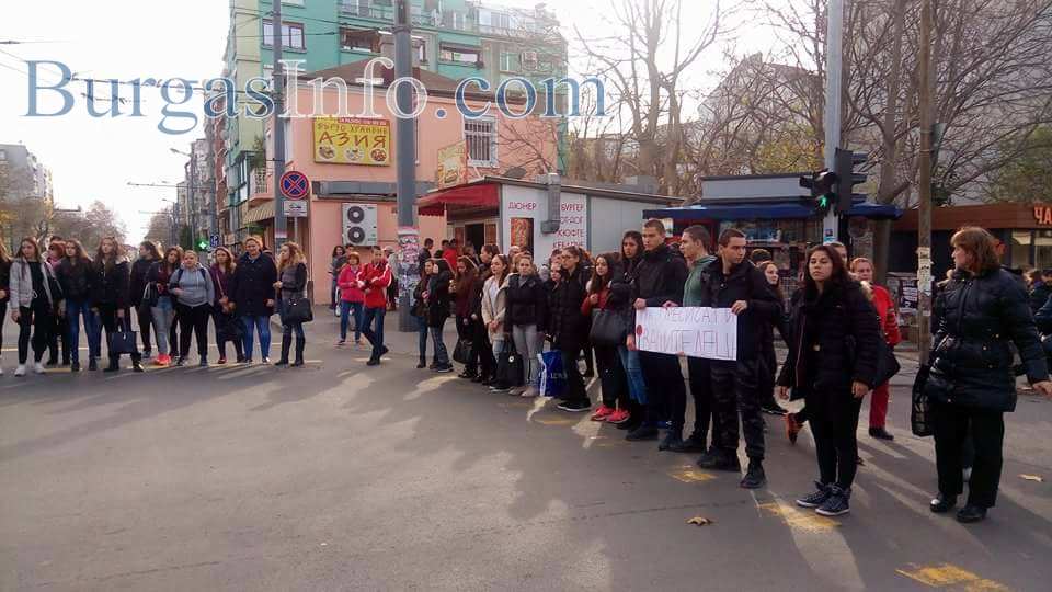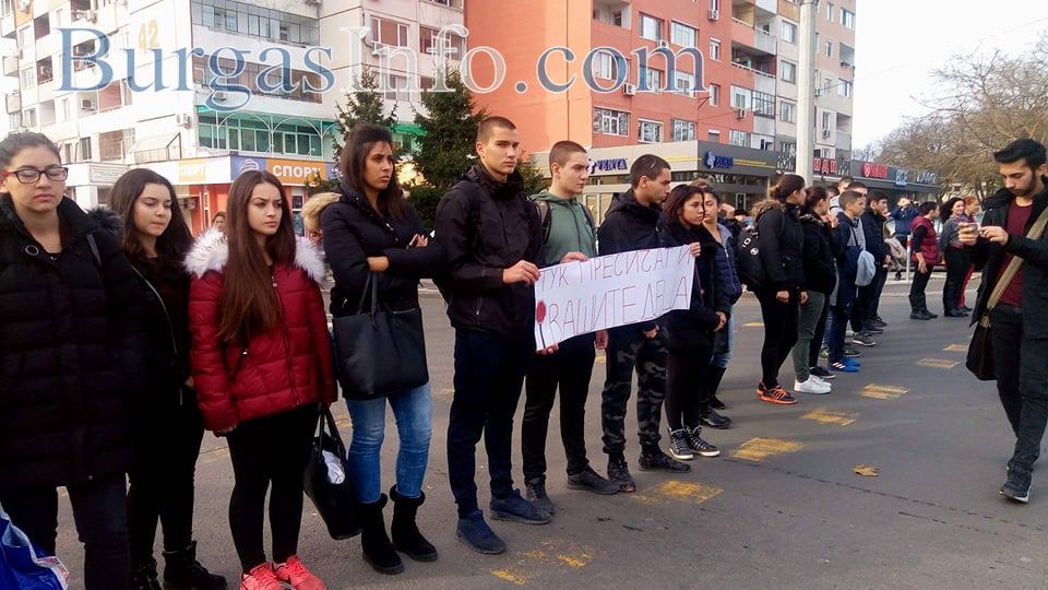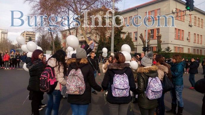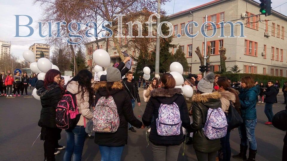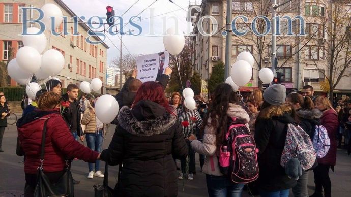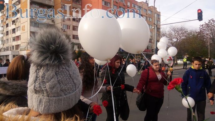 Съучениците на загиналия на пешеходна пътека край Атия – Костадин Джардов, от Професионалната гимназия по туризъм в Бургас, излязоха днес хванати за ръце на централния бул. „Стефан Стамболов“, за да почетат паметта му. „Ще останеш завинаги в нашите сърца. Обичаме те!“, „Спрете, тук пресичат деца“, бяха част от плакатите, които учениците носеха със себе си. Бели балони се понесоха в небето. Тийнейджърите със сълзи на очи си спомняха за своя приятел и съученик, чиято смърт потресе хиляди хора.