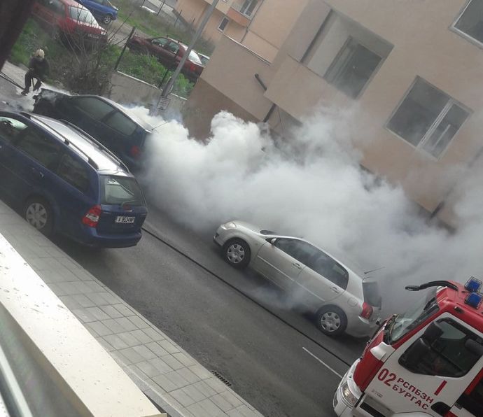 "Фолксваген Поло" с бургаска регистрация горя днес до блок "Краставицата" в бургаския ж.к. "Меден рудник". Колата се е самозапалила откъм двигателя, за щастие пожарът е навреме потушен от един противопожарен автомобил и не е засегнал задната част на колата, където е имало газова уредба. Инцидента е станал днес на обяд, докато собственичката на изгорелия автомобил е пазарила в магазин наблизо.![]()
