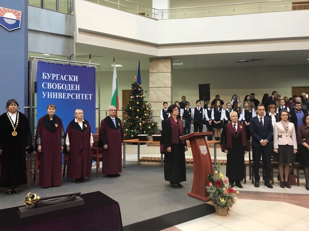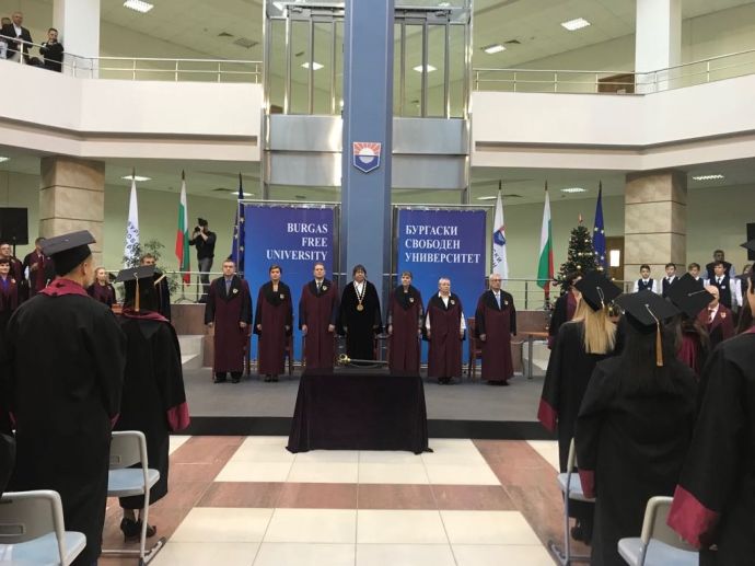 По традиция в навечерието на Никулден в атриума на Бургаски свободен университет се състоя тържествената церемония по връчване дипломите на Випуск`2017.