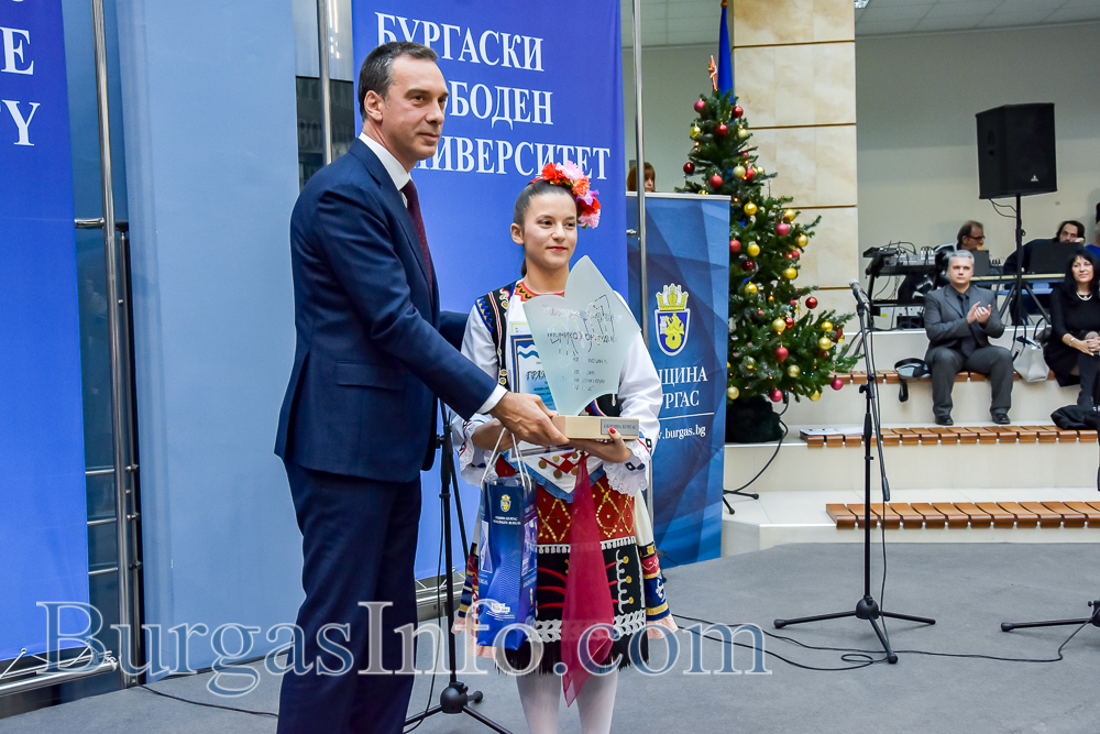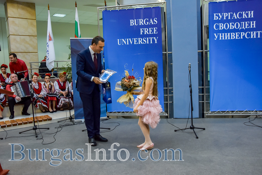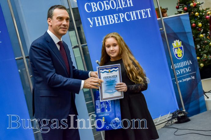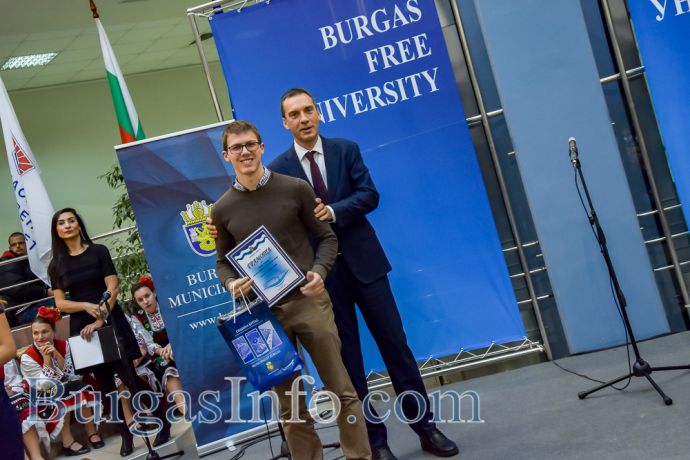 Кметът Димитър Николов награди в зала „Атриум“ на Бургаския свободен университет най-изявените от тях, завоювали призови места в национални и международни олимпиади, състезания и конкурси.