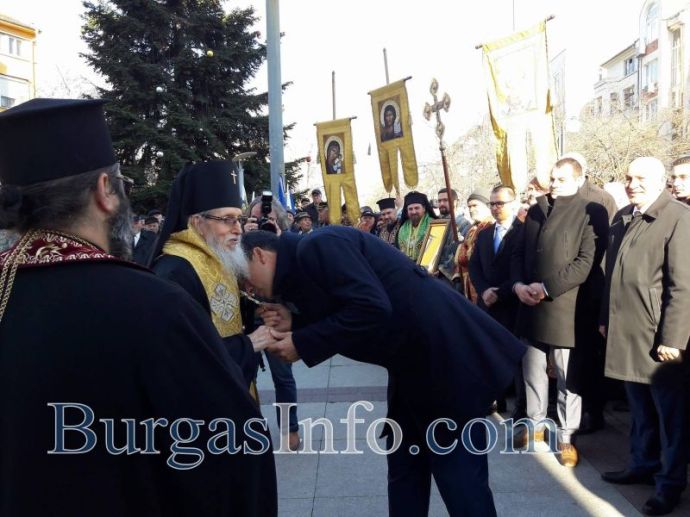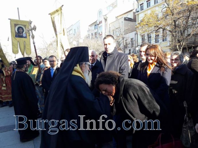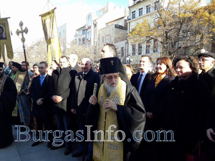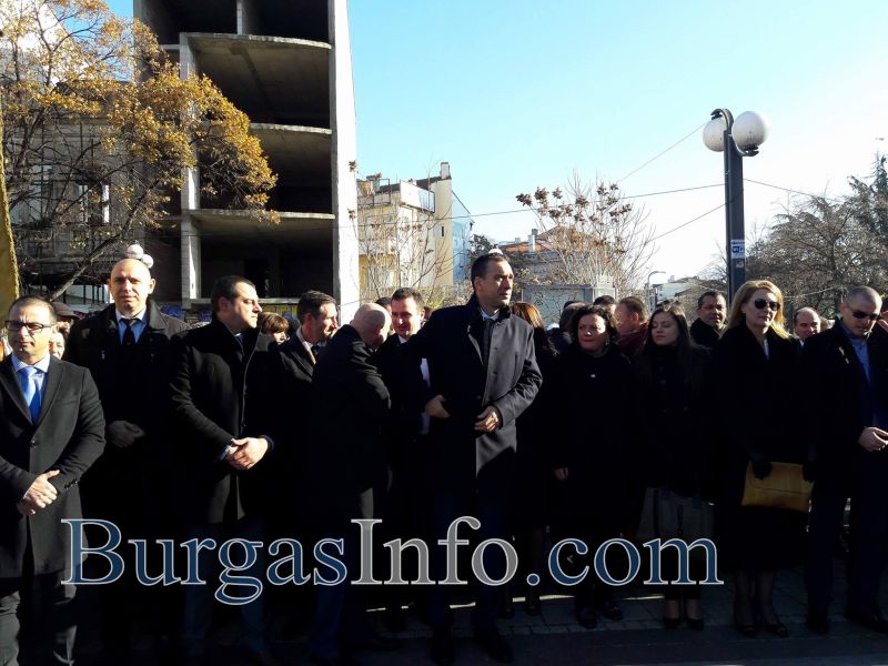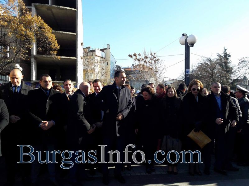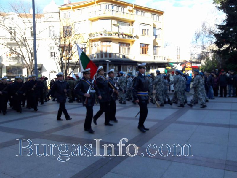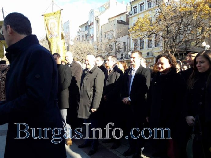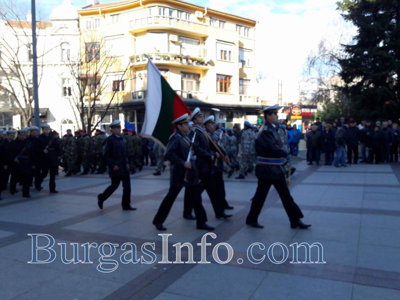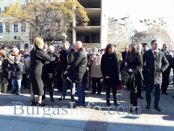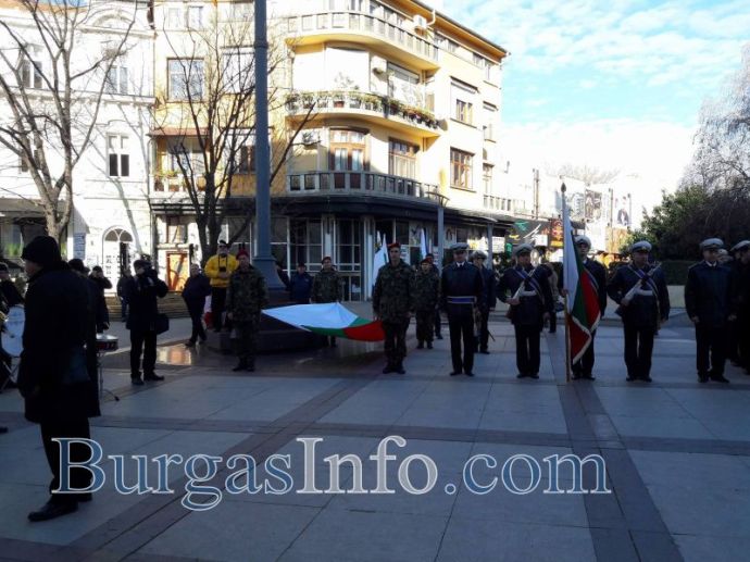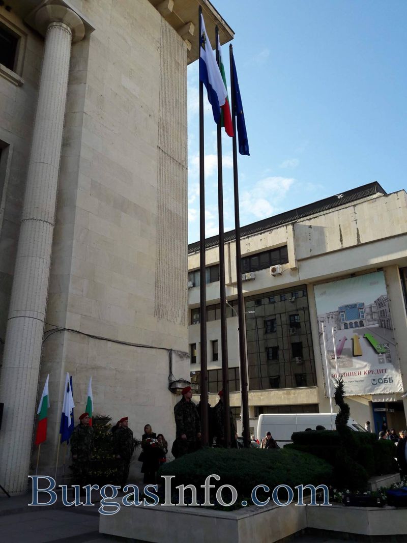 По традиция точно в 10.30 часа на площад "Атанас Сиреков" се състоя ритуалът по издигане флаговете на Република България, Община Бургас и ЕС. На него присъстваха кметът Димитър Николов, Негово Високопреосвещенство сливенският митрополит Иоаникий, зам.-министърът на енергетиката Жечо Станков, зам.-областният управител Севдалина Турманова, председателят на Общинския съвет Костантин Луков, зам.-кметът Красимир Стойчев, депутатите от Бургаски регион Ивелина Василева, Галя Василева, общински съветници и много граждани.