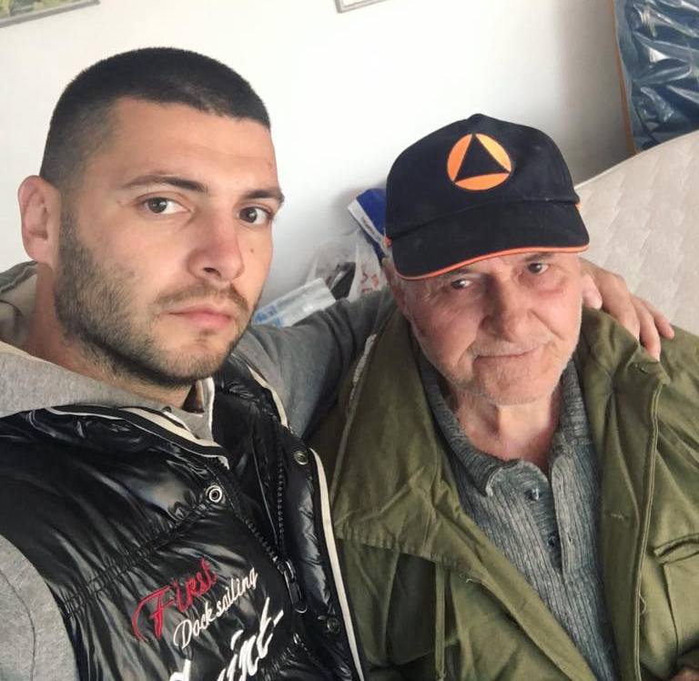 Спасителят Пламен Карашев с един от пострадалите при наводнението в село Ливада, които той познава поименно и лично