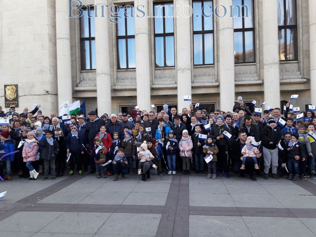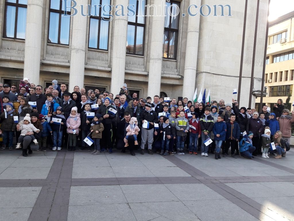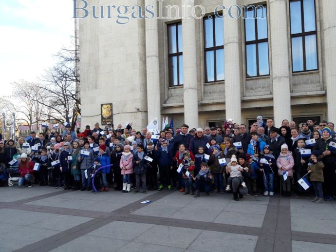 Златната снимка, която се превърна в традиция навръх Никулден в Бургас, отново събра стотици именици. Сред тях имаше както бебета, така и белобради старци. Всички заедно с кмета развяха знамена с герба на Бургас и позираха пред Общината за фотографията, която ще стане част от документите на Държавния архив. Сред имениците за втора поредна година бе малката Никол Златева, чийто баща Дончо Златев я води вече втора поредна година.