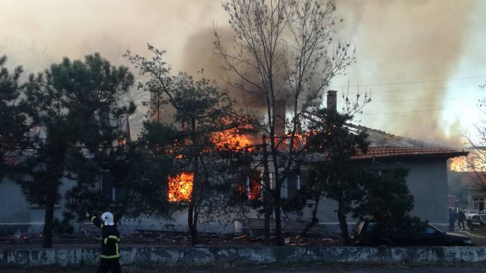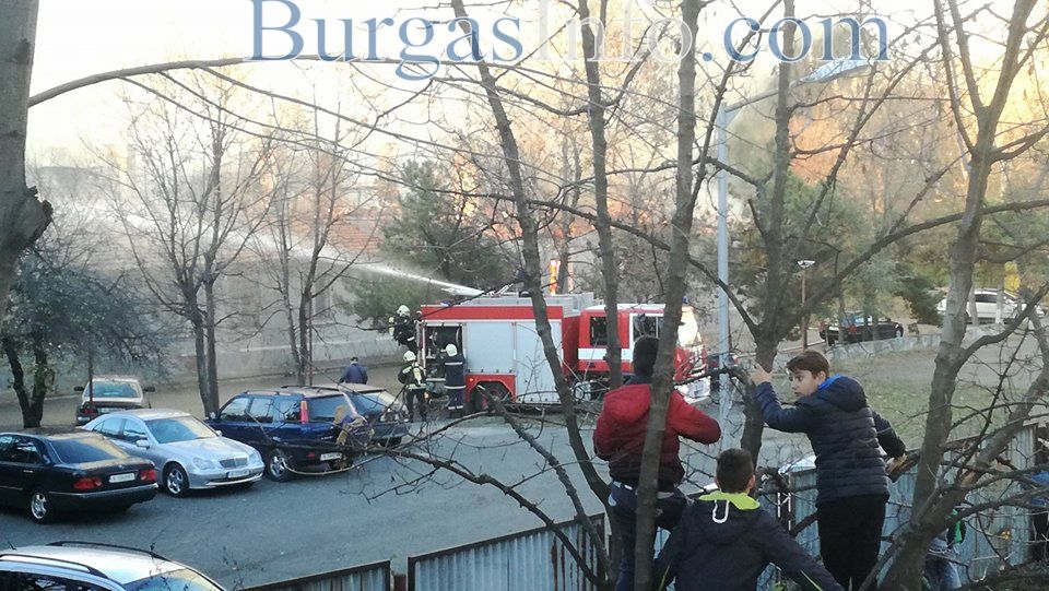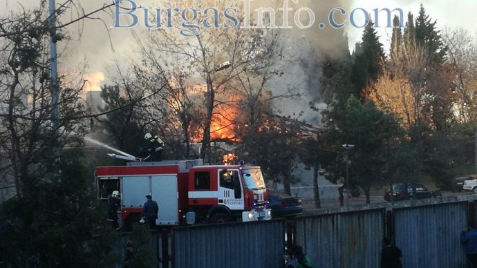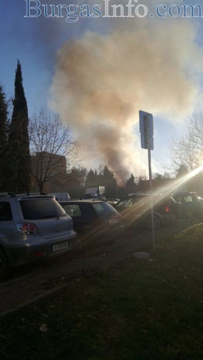 Пожарът, който се разрази в складовете на Жандармерията в бургаския ж.к. „Изгрев”, буквално поглъща постройките. На място са две противопожарни автомобила и екипи, които в момента се борят със стихията. Димният стълб, койуто се издига в небето, разнася аромат на изгоряло и в двата комплекса – „Изгрев” и „Славейков”.