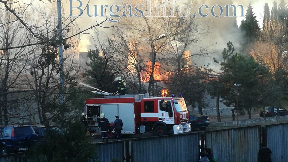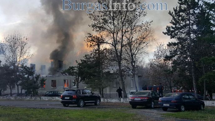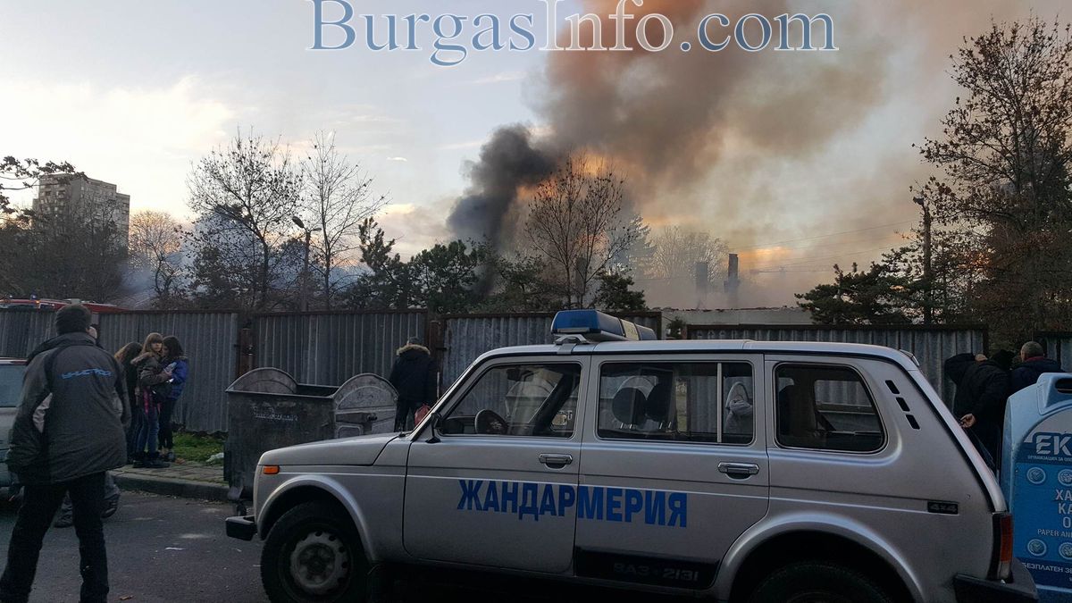 Пожарът, който обхвана складовете на Жандармерията в к-с „Изгрев”, се разраства с бясна сила. В момента огнеборците събарят покривите, за да предотвратят експлозия. Причината е, че вътре е пълно с коли със заредени резервоари на Жандармерията. Има и висящи оголени жици, които при контакт с огромните количества вода, дават на късо. Пожарникарите призовават децата и останалите граждани, които наблюдават гасенето на огъня да се отдалечат максимално, за да няма инциденти. В момента на място са 4 противопожарни автомобила – 2 пред складовете и 2 зад тях.