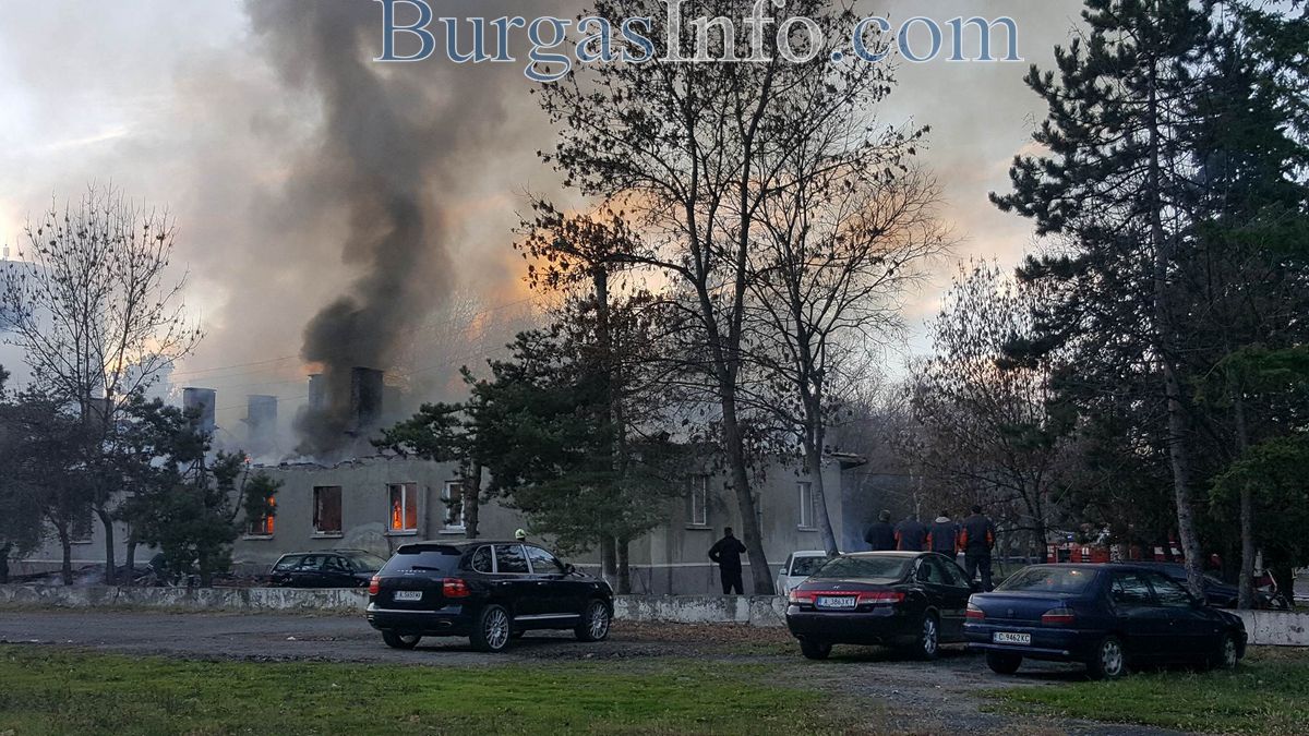 Помещенията, които горят, се използваеми - вещови и класни. Проблемът е, че са със старо обзавеждане и има балатуми, които горят, а покривита са от гредоред, който също засилва пламъците и правят гасенето трудно. Обстановката се усложнява и от вятъра, който разгаря пожара, н огнеборците правят всико възможно.