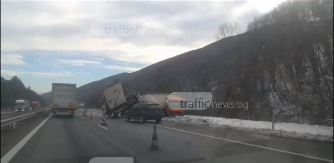 Движението се извършва само в едната лента. На място все още няма полицейски екип.